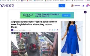 Yahoo U.K on 3RD of July 2019 had written a small headline in their front page with the title, Asylum Seeker Stabber ‘asked people if they were English.