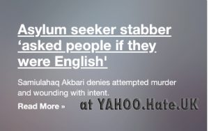 Then the headline of the MONOPOLIES OF YAHOO U.K was changed once you clicked in their link. And it said in a more detailed and universal way, “Afghan asylum seeker ‘asked people if they were English before attempting to stab them.’