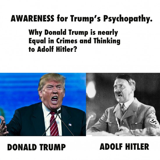 AWARENESS For Trump’s Psychopathy. Why Donald Trump is nearly Equal in Crimes and Thinking to Adolf Hitler?