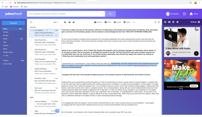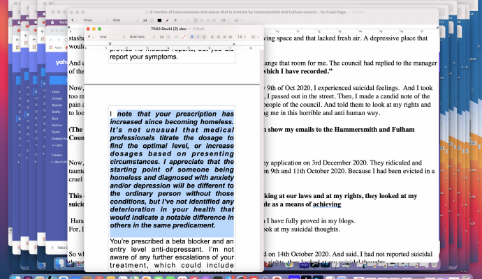 Now, when Hammersmith and Fulham council made their review of my application on 3rd December 2020. They ridiculed and taunted my pain, that showed that I had experienced suicidal thoughts on 9th and 11th October 2020. Because I had been evicted in a cruel and heartless way by Hammersmith and Fulham council.