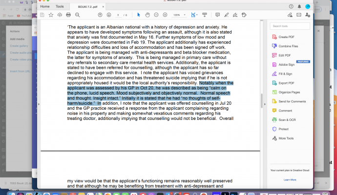 “The Council’s Psychiatric Advisor (CPA) had described my application in this way: ‘The applicant is an Albanian national with a history of depression and anxiety.”