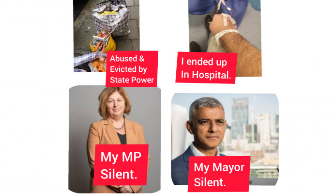 Now, a day before being thrown outside or evicted, and during that day 9th of Oct 2020, I experienced suicidal feelings. And I took too many anti depressants to calm down my depressive moods. And so, I passed out in the street. Then, I made a candid note of the pain and of the feelings that I was going through and I wrote them to the people of the council. And told them to look at my rights and to look at our laws. And see whether they have broken the laws by using me in this horrible and anti human way.