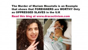 So a foreigner is drowned out by the media in the U.K. Murdered for nothing, like the case of Mariam Moustafa shows. And welcomed in the U.K only as an oppressed slave.